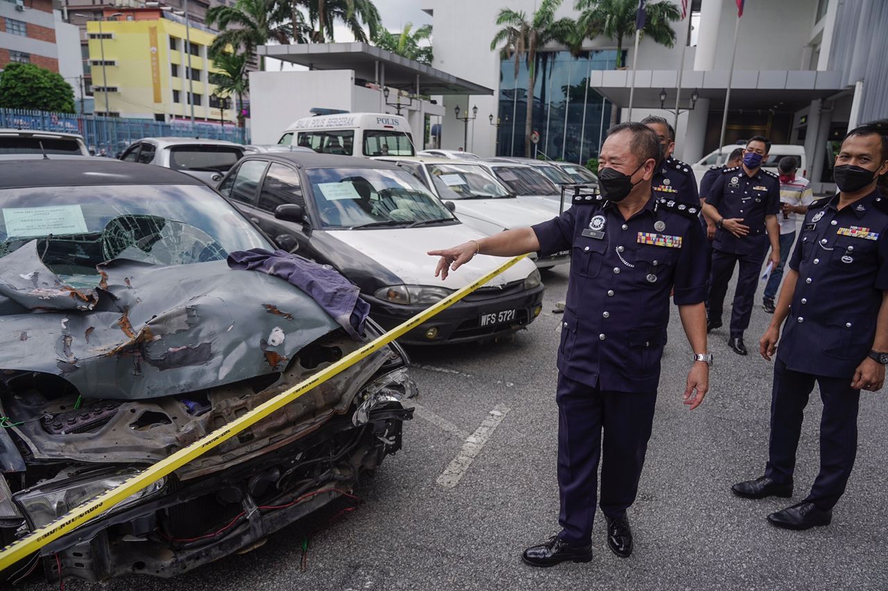 . Curi kereta diparkir jual alat ganti. A Asmadi dua dari kiri menunjukkan barangan yang dirampas pada sidang akhbar di Ibu Pejabat Polis Daerah Putrajaya di sini pada Rabu. Tingkah laku mencurigakan seorang pemandu cuba mengelak daripada diekori kereta peronda polis MPV membawa kepada terbongkarnya sindiket curi kereta di bandar ini malam kelmarin.